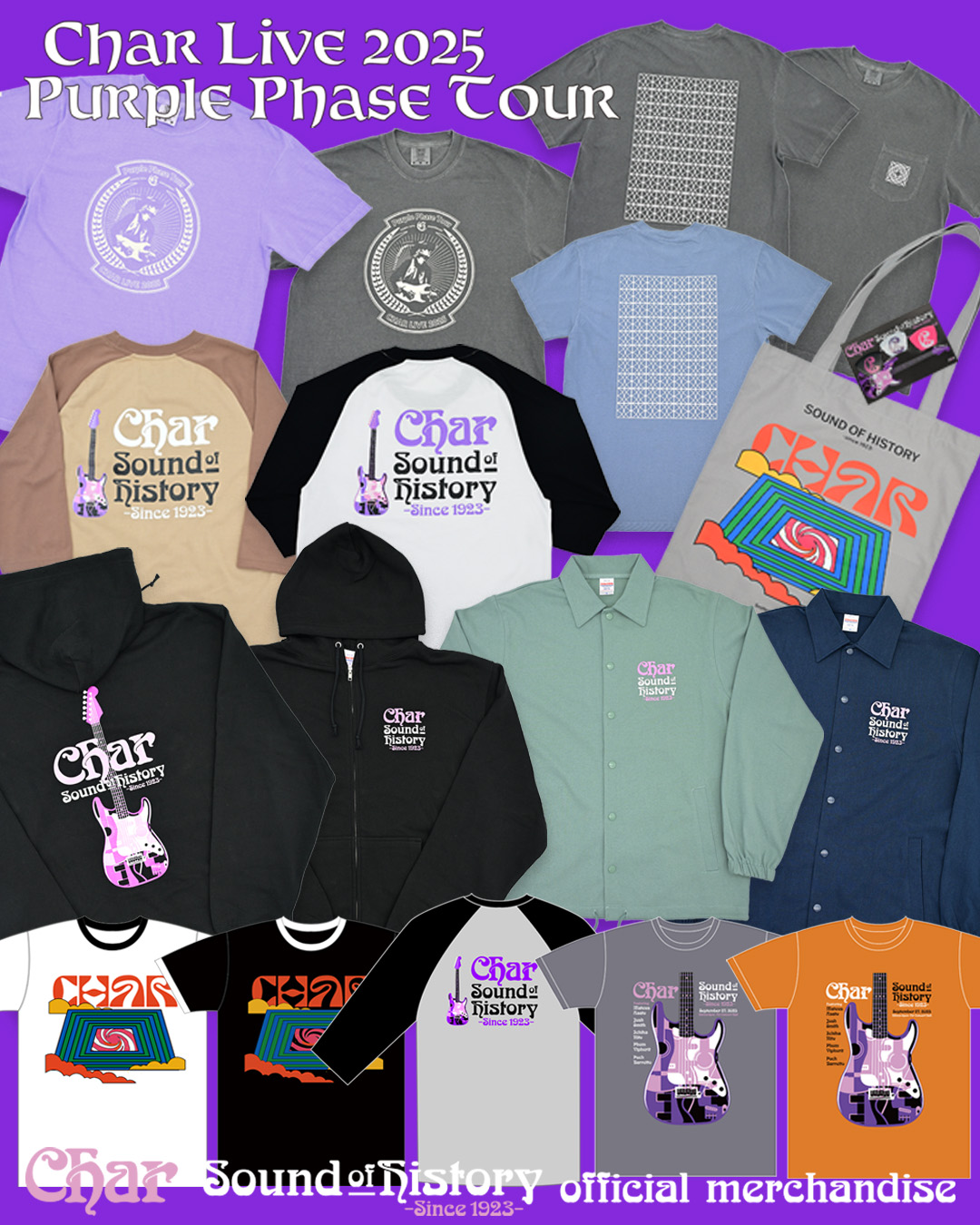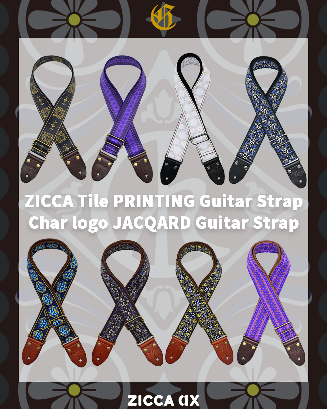 Purple Phase Tourで初披露された8種類のPrinting Guitar StrapとJacquard Guitar StrapをZICCA NETにて販売開始!Charの”実家”玄関タイルのインスピレーションをモチーフにしたZICCA Tile logoとお馴染みのChar logoと家紋をあしらったジャガード織のギターストラップを5カラー展開!さらに古希祝いのテーマカラー「紫」を基調にPurple Stole Printing/Jacquard 2タイプを発売!ぜひチェックしてみてください!